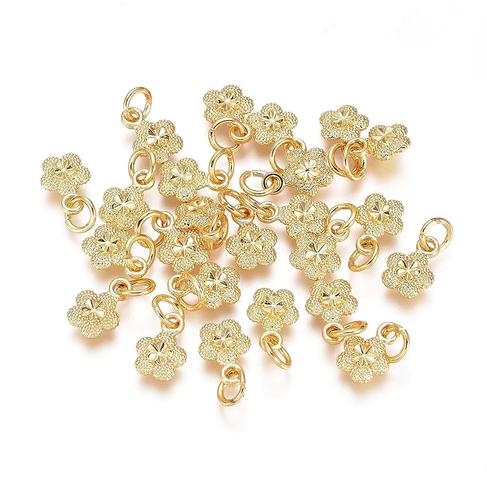 5pcs Electroplated Alloy Charms Long-Lasting Plated Brass Jump Ring Flower Golden Plated for DIY Jewelry Necklace Earring Craft