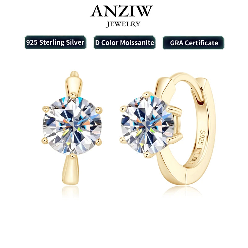 Anziw D1.0ct Moissanite Earrings Solitaire Hoops for Women 925 Silver Gold Huggie Earring Wedding Engagement Jewelry Girl Gift