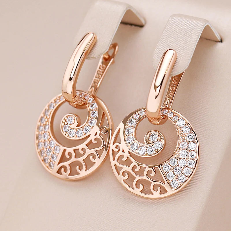 Kinel Hot Crystal Flower Drop Earrings for Women 585 Rose Gold Color With Natural Zircon Accessories High Quality Daily Jewelry