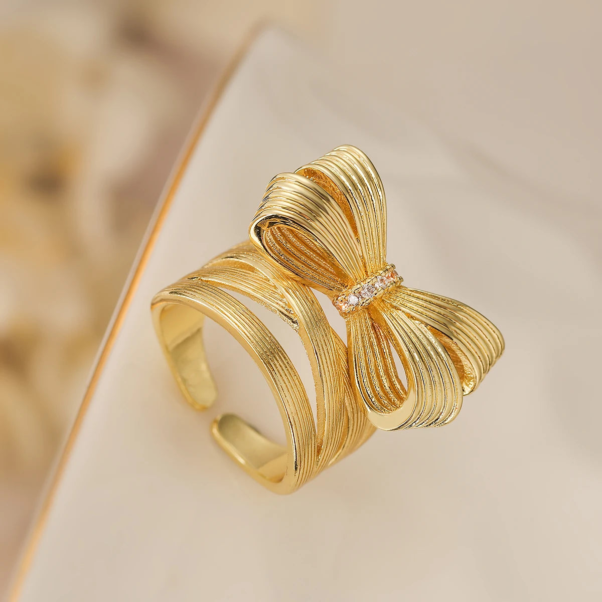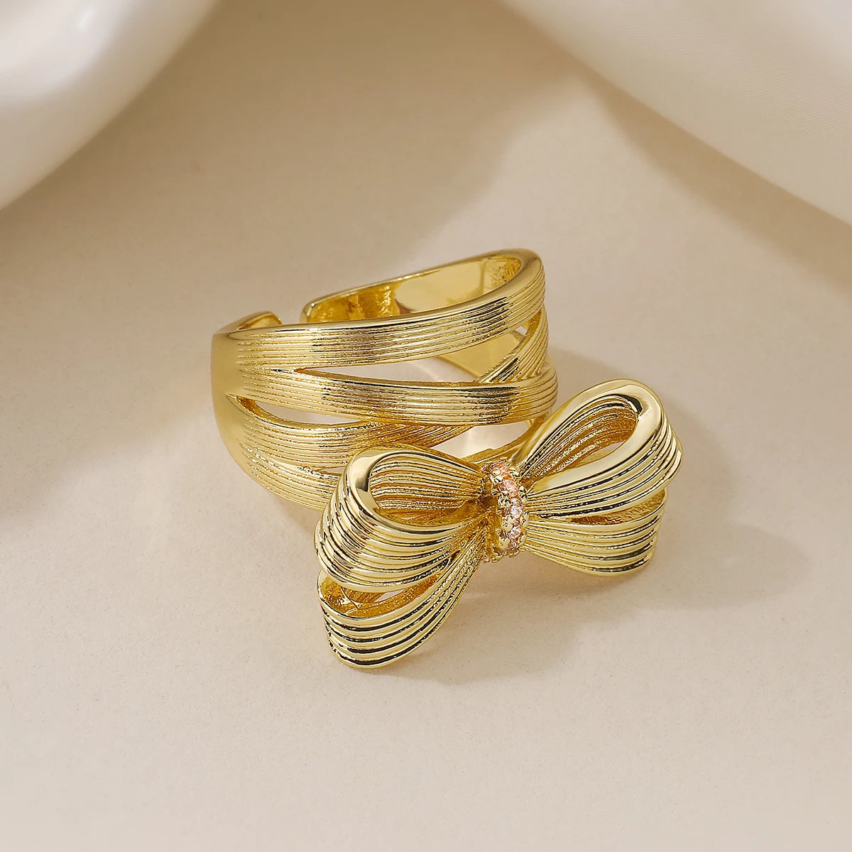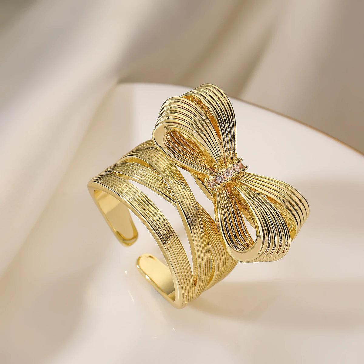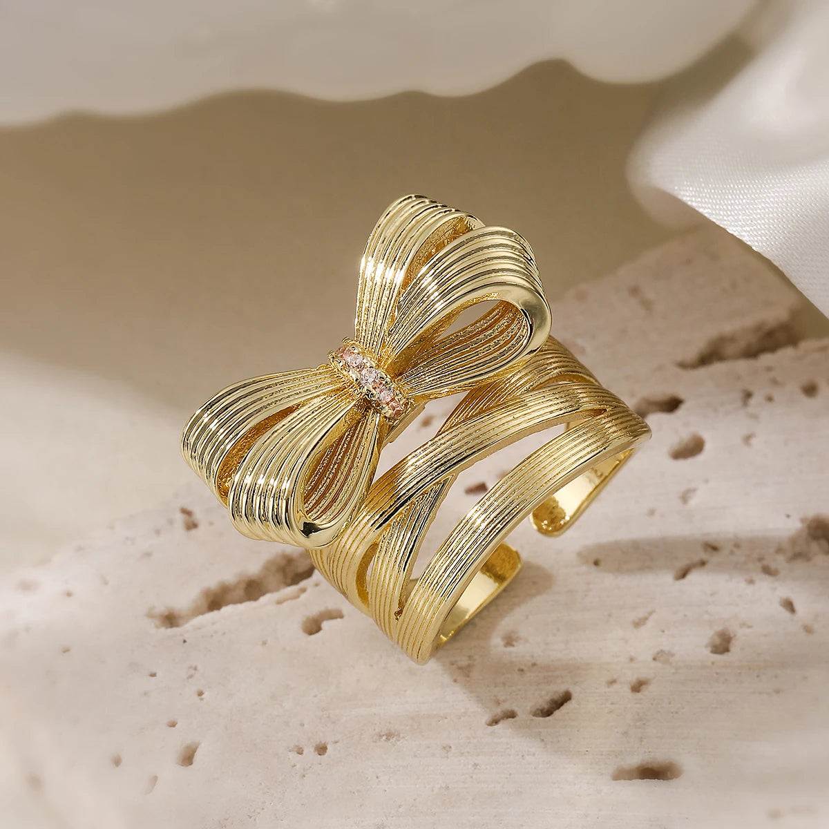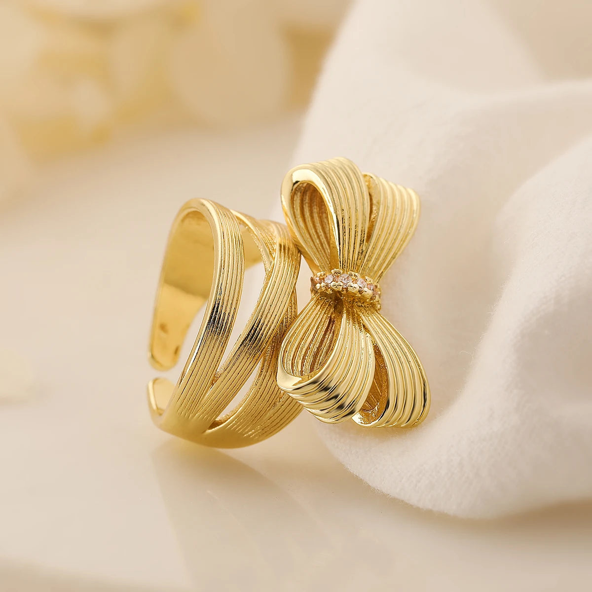 NEWBUY Trendy Gold Color Statement Big Bowknot Shape Ring For Women Party Jewelry