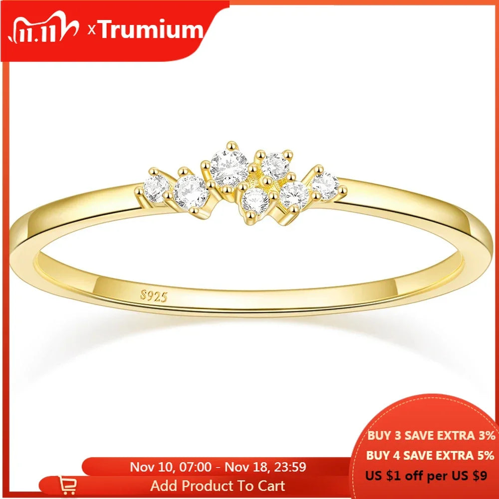 Trumium 1.5mm 925 Sterling Silver 14K Gold Plated CZ Wedding Band Dainty Stackable Cubic Zirconia Engagement Rings for for Women